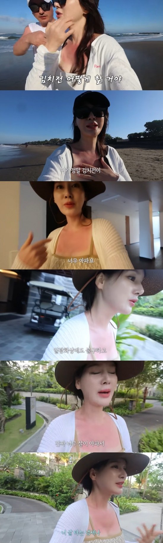 [서울=뉴시스]전재경 기자 = 전 축구선수 안정환 아내이자 유튜버 이혜원이 가족과 발리 여행 중 심한 햇볕 화상을 입은 사연을 전했다.