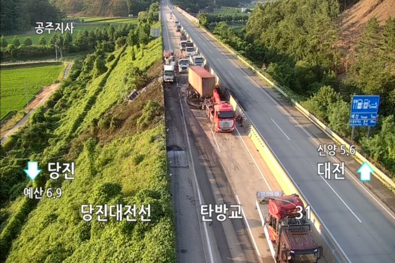 또 이 사고 충격으로 25t 트레일러에서 불이 나 이들 차량 3대 일부가 불에 탔다.