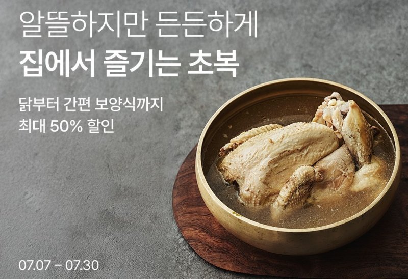 오는 30일까지 열리는 이번 행사는 삼복더위의 시작 초복을 앞두고 알뜰하지만 든든하게 여름을 날 수 있는 상품들로 구성했다. 복날 식재료부터 보양 간편식, 여름 맛집 레스토랑 간편식(RMR) 등을 샛별 배송으로 신선하게 만나볼 수 있다.