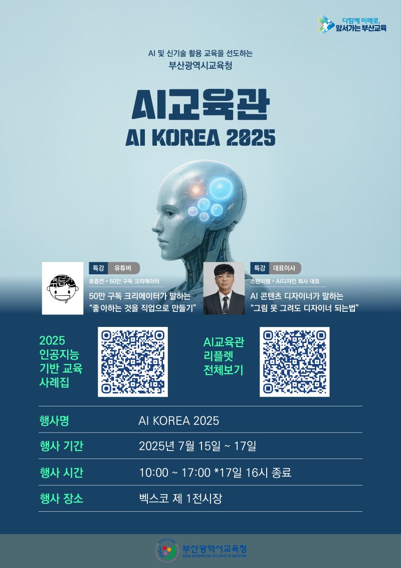 (부산=뉴스1) 장광일 기자 = 부산시교육청은 오는 15~17일 벡스코 제1전시장에서 열리는 'K-ICT WEEK in BUSAN 2025' 행사에 인공지능 교육 사례 공유와 가치 확산을 위한 AI(인공지능) 교육관을 운영한다고 14일 밝혔다.