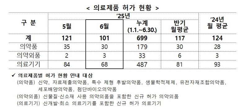 [서울=뉴시스]이승주 기자 = 식품의약품안전처가 지난 6월 한 달간 의료제품 총 101개 품목을 허가했다고 14일 밝혔다.