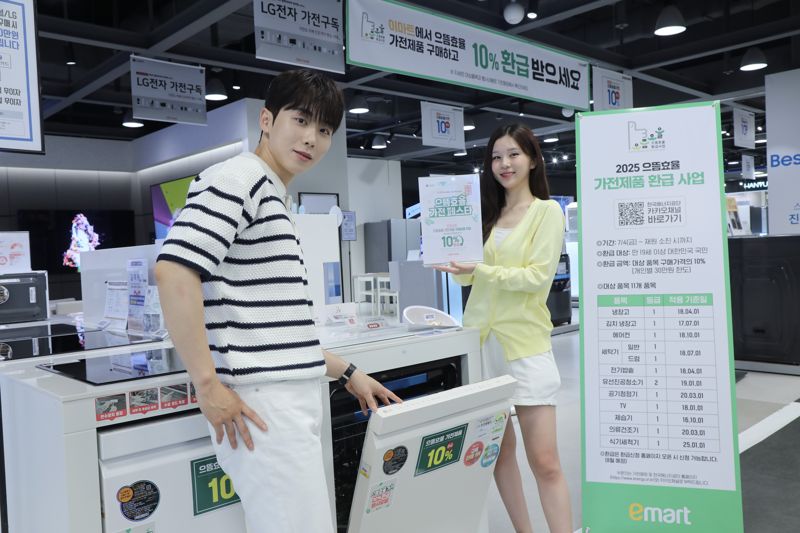 [파이낸셜뉴스] 이마트가 에너지 효율이 높은 가전을 저렴하게 판매하는 프모로션을 연다. 이마트 자체 행사와 더불어 정부의 으뜸효율 1등급 가전제품 환급까지 받을 수 있다.
