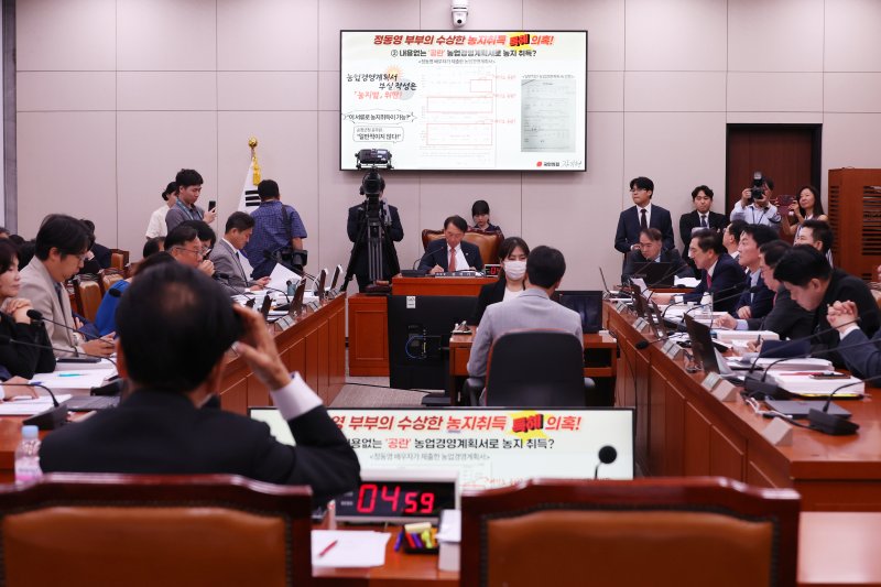 유용원 국민의힘 의원은 이날 국회 외교통일위원회 정 후보자 인사청문회에서 "태양광 가족법인 운영 실태와 후보자 가족이 농업인을 위한 태양광 지원제도를 악용한 정황이 곳곳에서 드러나는 상황"이라고 지적했다.