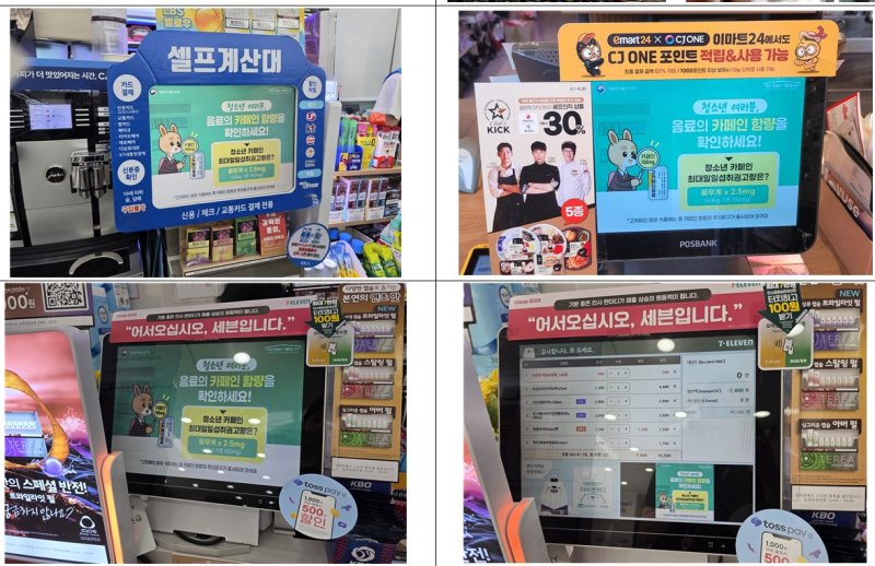 총 5만 4227곳의 편의점 계산대 결제 화면(POS)에 "청소년 여러분, 음료의 카페인 함량을 확인하세요! 청소년 카페인 최대 일일섭취권고량은 몸무게 1㎏당 2.5㎎입니다"라는 내용의 홍보 포스터를 송출 중이다. 또 고카페인 음료 진열대에 관련 홍보물을 부착했다.