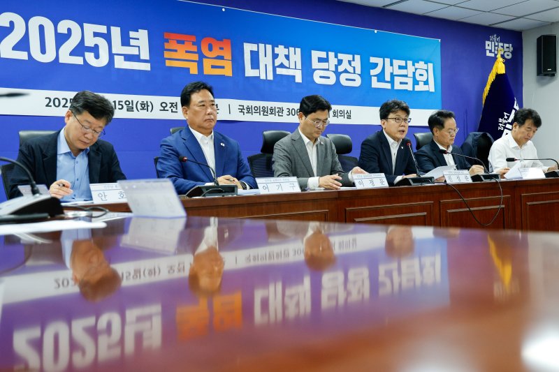 [파이낸셜뉴스] 정부와 더불어민주당은 15일 국회에서 폭염 대책 당정 간담회를 개최하고 폭염으로 인해 농수산물 가격이 급등하는 '히트플레이션'에 대응하기 위한 중장기 대책과 함께 산업환경 폭염 안전대책을 점검했다.