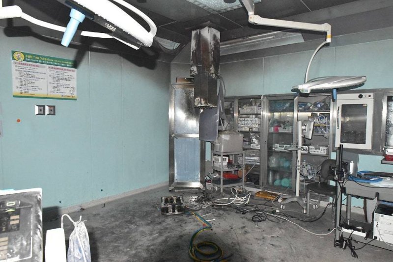 불은 수술실 내 전기 가스 집중 공급장치 콘센트에서 발화된 것으로 잠정 조사됐다.