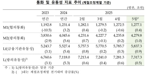 한국은행 2025년 5월 통화 및 유동성 발표