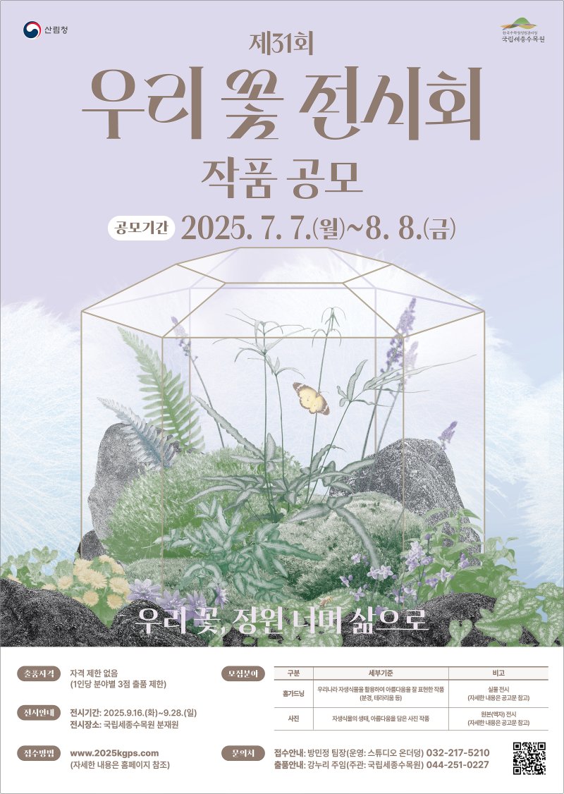 우리나라 자생식물의 아름다움과 쓰임을 널리 알리고 국민의 관심을 유도키 위한 이번 전시회는 홈가드닝(분경·테라리움 등)과 사진 분야로 나눠 출품작을 받는다.