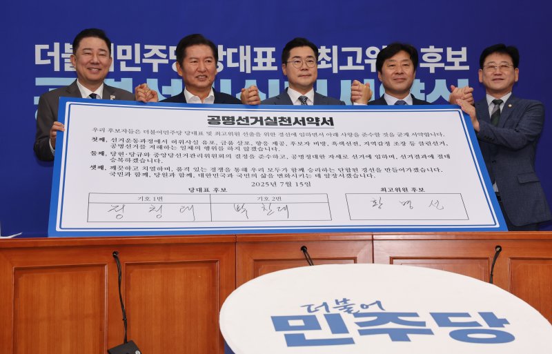 한편, 민주당 대표 선거는 박 의원과 정청래 의원 2파전 구도로 치러지며 19일 충청권을 시작으로 20일 영남권, 26일 호남권, 27일 수도권에서 순회 경선을 치르고, 8월 2일 경기 고양 킨텍스에서 개최하는 전당대회에서 최종적으로 당 대표를 선출한다. 이번 전당대회에서는 김민석 국무총리 사퇴로 공석이 된 최고위원도 함께 선출한다. 최고위원에는 황명선 의원이 단독 출마했다.
