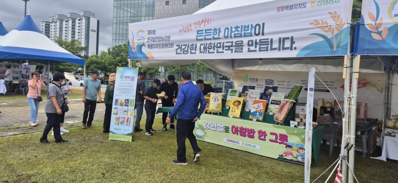 강원농협은 이날 '아침밥은 강원 쌀로!'란 슬로건 아래 식습관 개선을 통한 쌀 소비를 강조하고 홍보 부스에선 쌀 나눔 행사도 진행했다고 밝혔다.