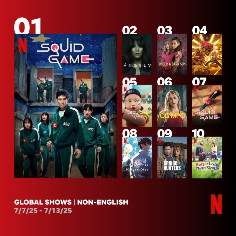 2021년 공개된 '오징어 게임1'은 비영어 쇼 주간 7위, 지난해 12월 공개된 '오징어 게임2'는 5위에 각각 올랐다.