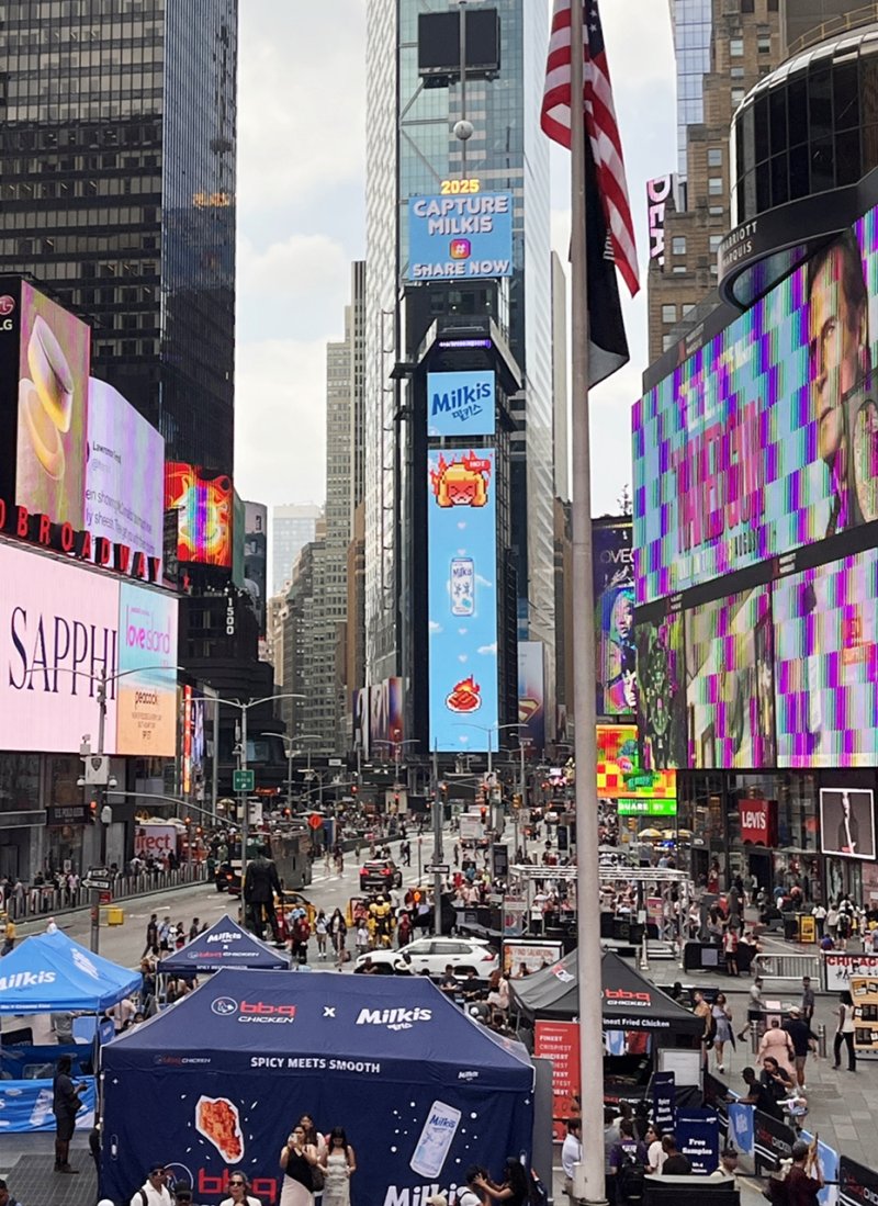 타임스퀘어 중앙에 위치한 광장 '파더 더피 스퀘어(Father Duffy Square)'에 밀키스 체험 부스를 설치하고 밀키스 오리지널과 딸기, 포도, 복숭아 등 총 5종의 제품 시음 기회를 제공했다.