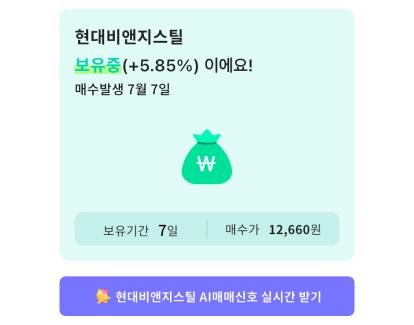 또한 개별 종목에서 나의 보유 매수가를 입력하면, 나만의 매도신호도 개별적으로 받을 수 있다.