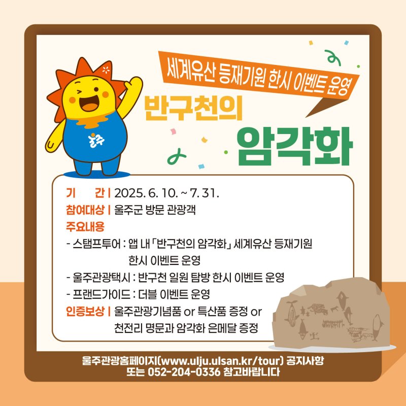 먼저 반구천의 암각화 관련 울주군 명소 9곳을 방문하는 스탬프투어가 마련된다.