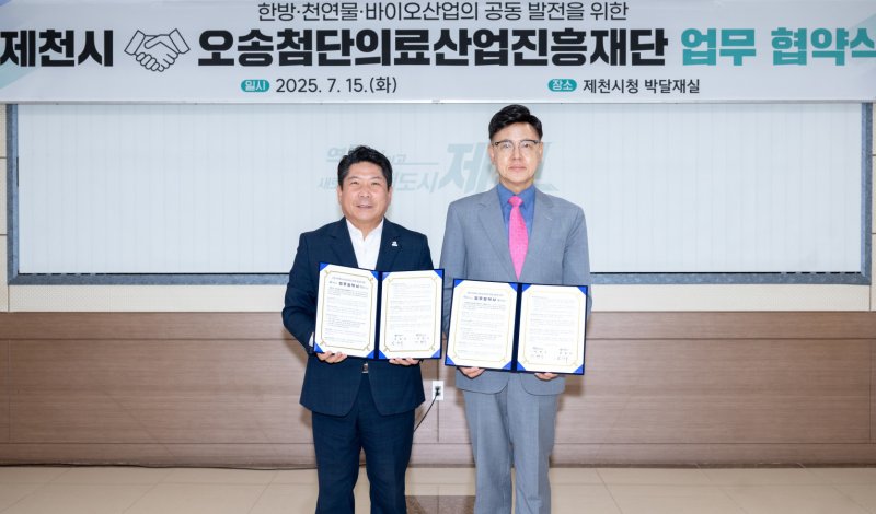 (제천=뉴스1) 손도언 기자 = 충북 제천시는 오송첨단의료산업진흥재단과 한방·천연물·바이오산업의 지속적인 발전을 위해 업무협약(MOU)을 했다고 16일 밝혔다.