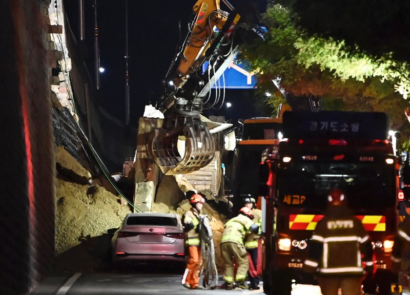 다만, 차량이 옹벽에 깔려있어 구조대원들이 수작업으로 주변 토사를 제거하는 작업을 거치며 A씨를 완전히 구조하기까지는 1시간 정도 시간이 더 소요됐다.