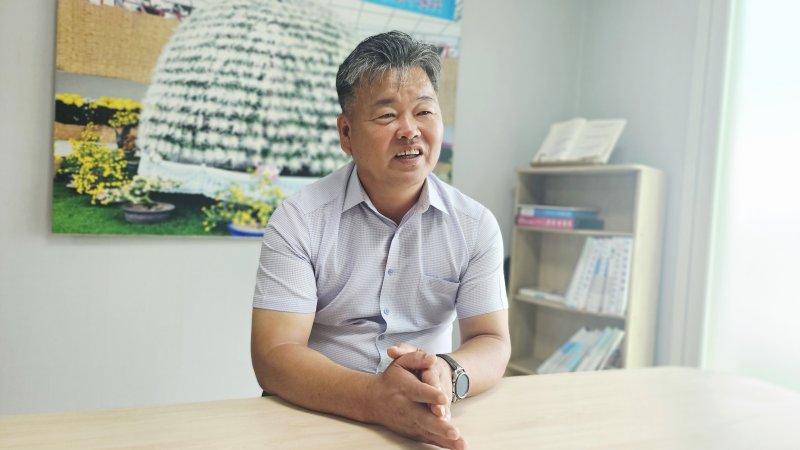 그 중심에는 20년 가까이 마산국화축제를 키워오고, 매년 새로운 테마를 고안하고, 작품 하나하나에 혼을 불어넣는 사람이 있다. 창원시 농업기술센터 도시농업과의 심춘석(54) 축제화훼팀장이다. 국화라는 꽃, 그리고 사람이라는 동료를 함께 키우는 그의 이야기를 직접 들어봤다.