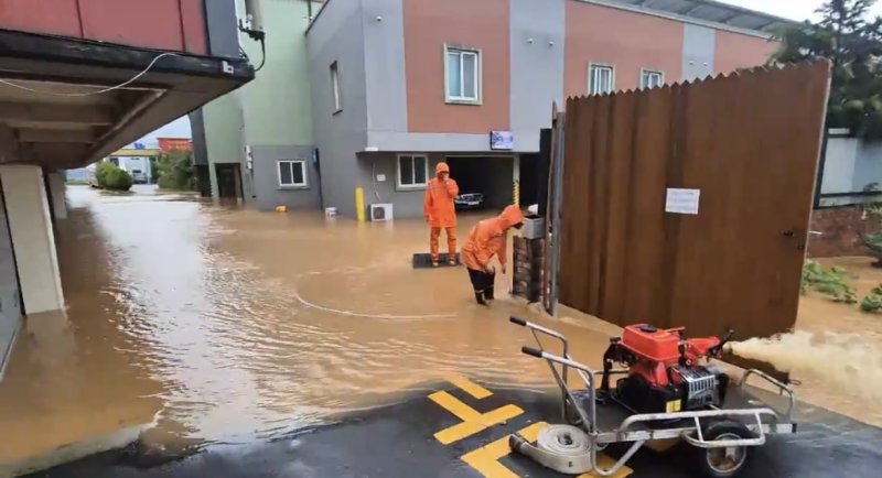 도로 및 상가 곳곳 침수 피해 발생, 열차와 항공기 운행도 차질