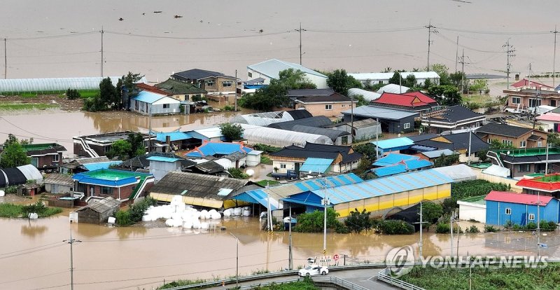 삽교천과 접하고 있는 예산군 삽교읍 하포리 마을은 완전히 물에 잠겼다.