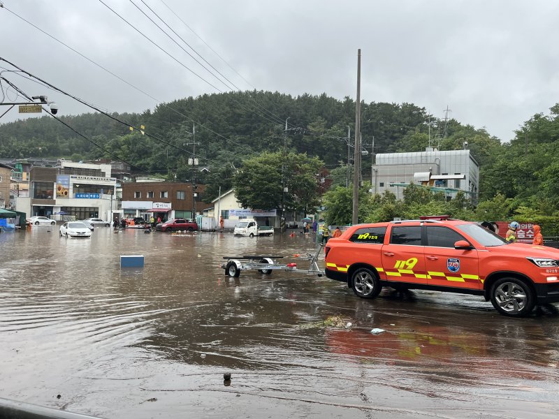 이날 오후 2시 21분께 노곡동 일대 도로가 폭우로 침수되면서 차량 여러 대가 물에 잠겼다.