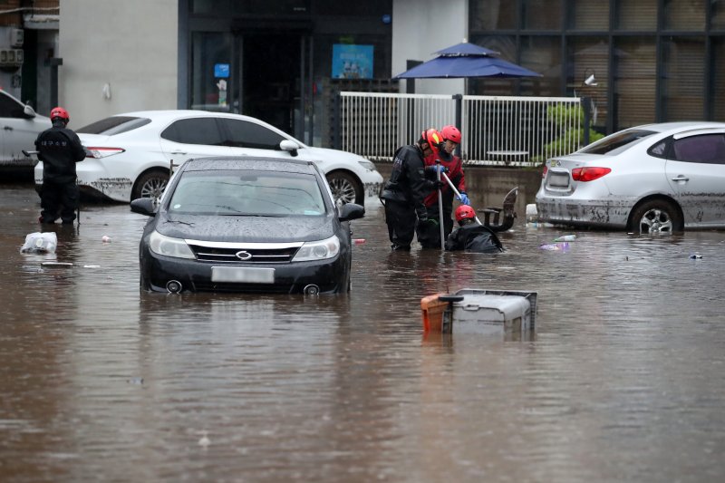 17일 오후 대구 북구 노곡동 마을이 집중호우에 침수돼 119구조대가 수색하고 있다. 2025.7.17/뉴스1 ⓒ News1 공정식 기자