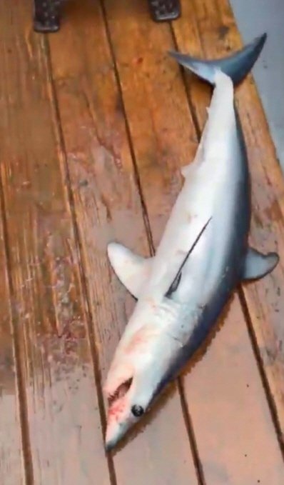 [파이낸셜뉴스] 강원 고성 앞바다에서 공격성이 강한 상어로 알려진 청상아리가 낚시객에 의해 잡혔다.