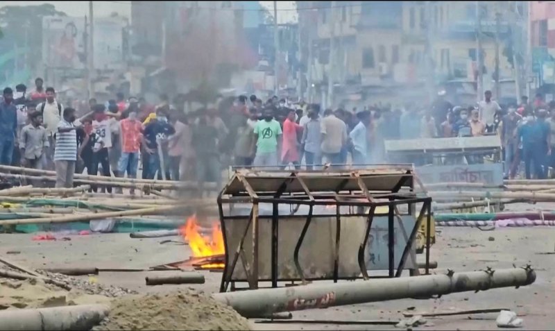 TV 영상에는 하시나 지지 활동가들이 경찰을 곤봉으로 공격하고 차량에 불을 지르는 모습이 나왔다.