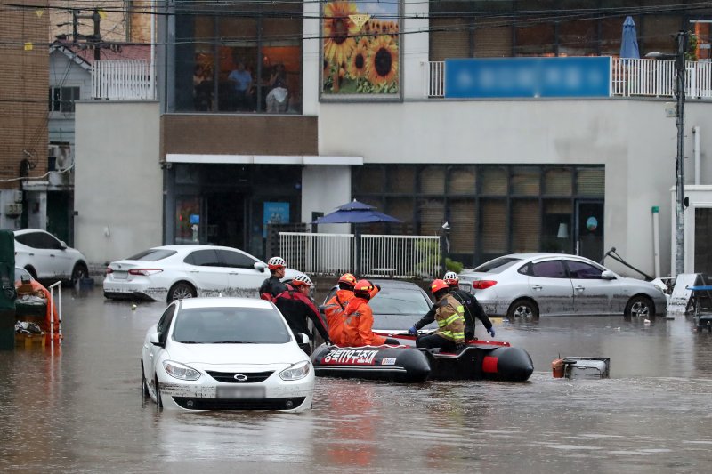 (대구=뉴스1) 남승렬 기자 = 국지성 호우와 강한 장맛비로 대구지역 7곳에서 교통통제가 이뤄지고 있다.