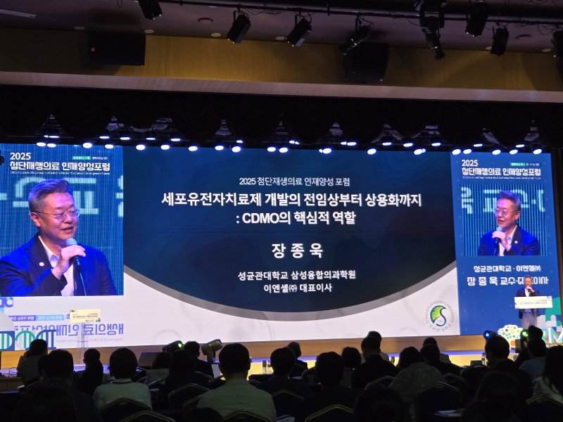(서울=뉴스1) 황진중 기자 = 이엔셀(456070)은 재생의료진흥재단, 한국조직공학·재생의학회, 한국줄기세포학회, 한국유전자세포치료학회가 공동 주최한 '첨단재생의료 인재양성 포럼'에서 자사 장종욱 대표가 지난 15일 '세포유전자치료제의 전임상부터 상용화까지: CDMO의 핵심적 역할'이라는 주제로 구두 발표를 진행했다고 18일 밝혔다.