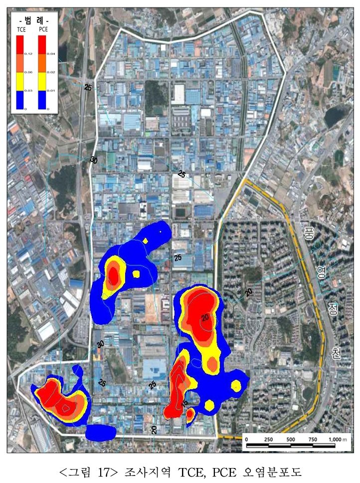 앞서 구는 '하남산단 지하수·토양오염조사 용역' 결과 171개 지점에서 TCE(트라이클로로에틸렌) 117개, PCE(테트라클로로에틸렌)은 67개 시료에서 기준치를 초과한 사실이 뒤늦게 드러나 245개소에 대한 전수 조사를 벌이고 있다.