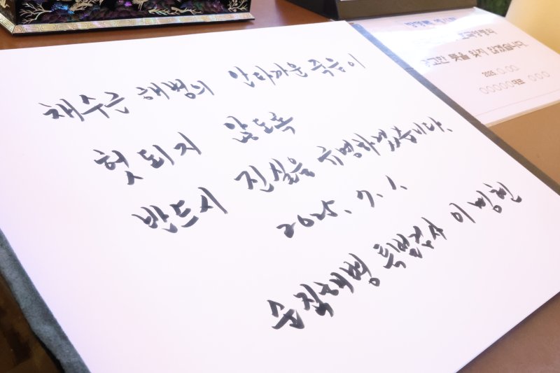 또 "지금의 시간은 저절로 만들어진 것이 아니다"라면서 "모든 눈물과 고난이 어렵게 진실에 한 걸음 다가선 2주기를 만들어냈다는 사실을 잊지 말아야 한다"고 부연했다.