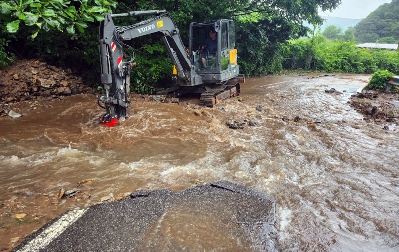 내촌면 시간당 94㎜ 폭우...토사 유출·도로 침수 등