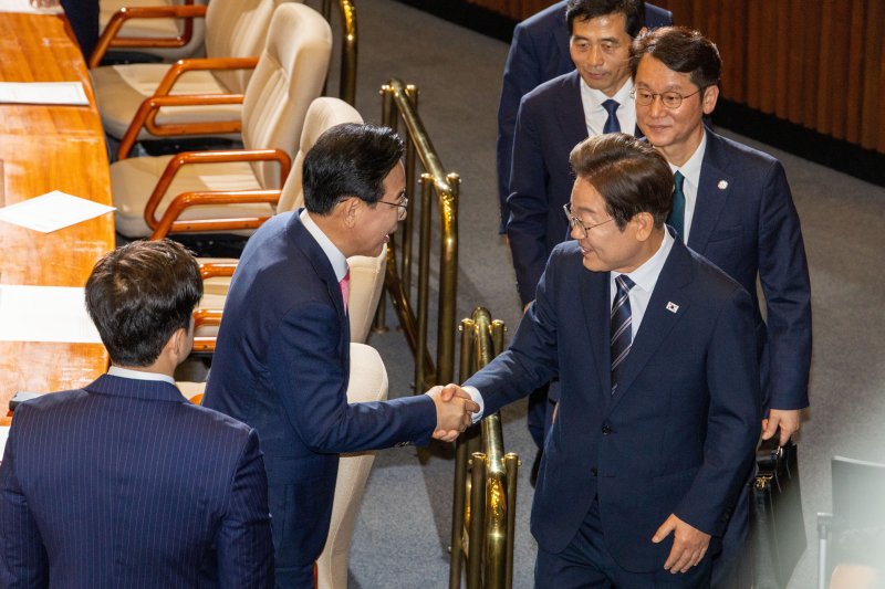(서울=뉴스1) 금준혁 임윤지 서상혁 기자 = 이재명 대통령이 지난 주말 여야 원내대표와 회동을 가진 것으로 확인됐다. 국민의힘이 부적절 장관 후보자의 지명 철회를 요구하며 회담을 요청한 데 따른 것이다.