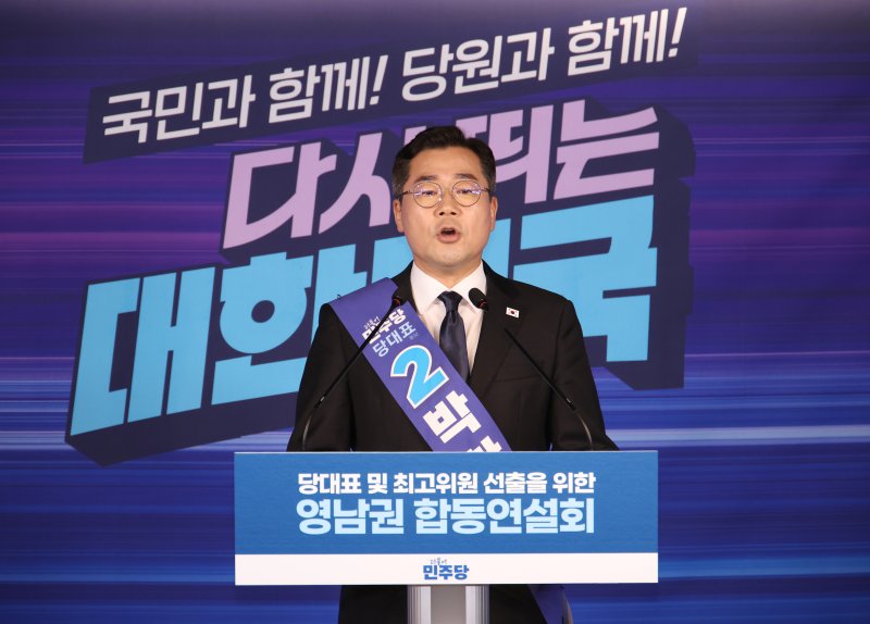 박 후보는 이날 서울 여의도 중앙당사에서 온라인으로 치러진 영남권 합동연설회에서 "(저는) 이재명 대통령을 가장 가까이서 지켜본 사람이다. 이재명 정부의 뜻이 국민에게 닿도록, 정치가 먼저 뛰는 선봉장이 되겠다"고 말했다. 이날 민주당 순회 경선은 전국적으로 폭우 피해가 속출하고 있다는 점을 고려해 온라인 방식으로 전환됐다.