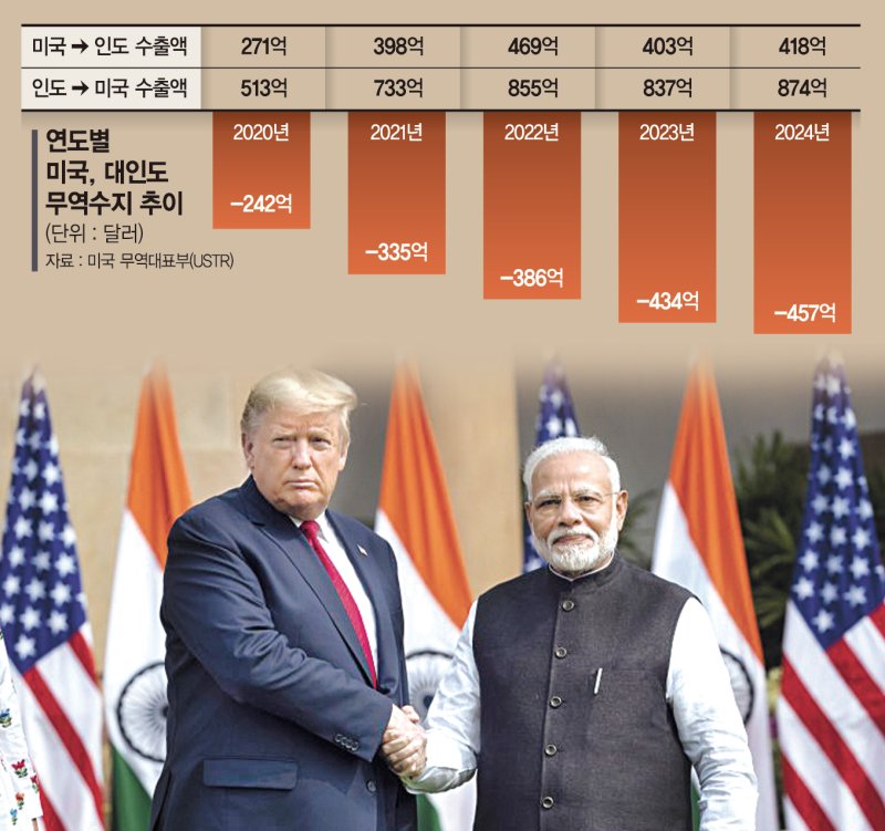 20일 외신에 따르면 도널드 트럼프 미국 대통령은 지난 16일 언론과의 만남에서 "인도와 곧 합의가 이뤄질 것이고, 이번 협정은 인도네시아와 유사한 모델이 될 것"이라고 말해 인도와 무역협상 타결이 임박했다고 말했다. 미국 정치전문지 폴리티코도 지난 8일부터 트럼프가 30여개국 국가 지도자들에게 관세율 통보 서한을 보냈지만, 인도는 예외였다는 점을 들어 "양측의 합의가 임박했다는 신호"라고 분석했다.
