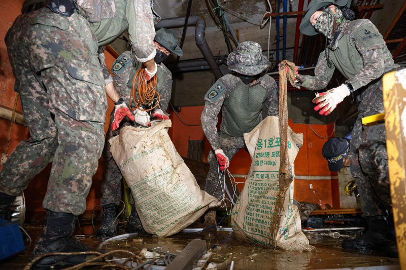 육군은 폭우 후 폭염 속에 대민지원에 투입되는 장병들의 안전을 확보한 가운데 침수지역의 민가와 상가에 유입된 토사물 제거와 가재도구를 정리 등 복구지원에 나서고 있다.