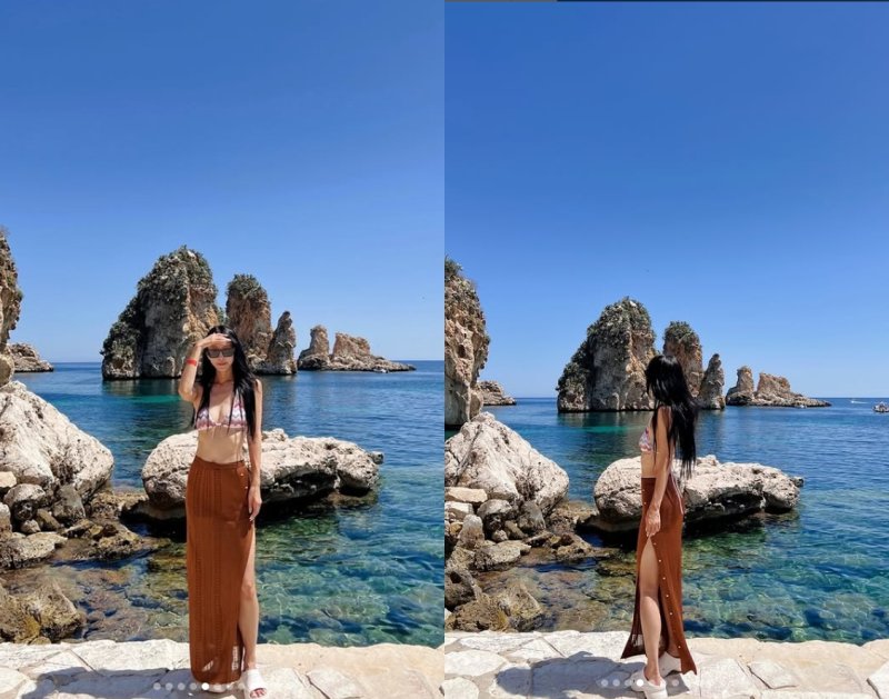 사진 속 한예슬은 이탈리아 시칠리아 섬을 배경으로 여러 포즈를 취했다.