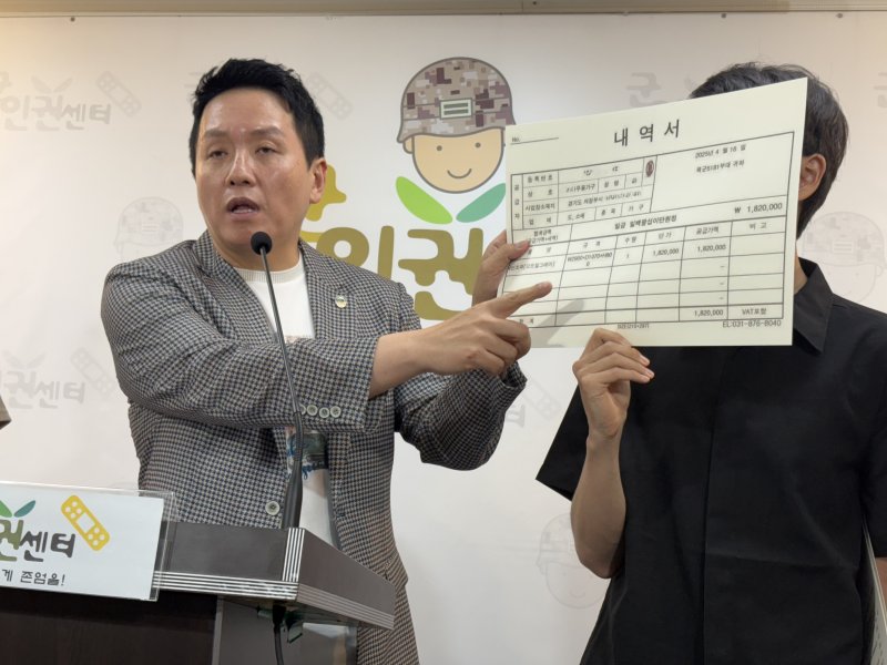 군인권센터는 21일 서울 마포구 군인권센터 내에서 열린 기자회견에서 사단장 A씨의 갑질 증거를 공개하고 국방부의 강제수사·재발 방지 대책 등을 촉구했다.