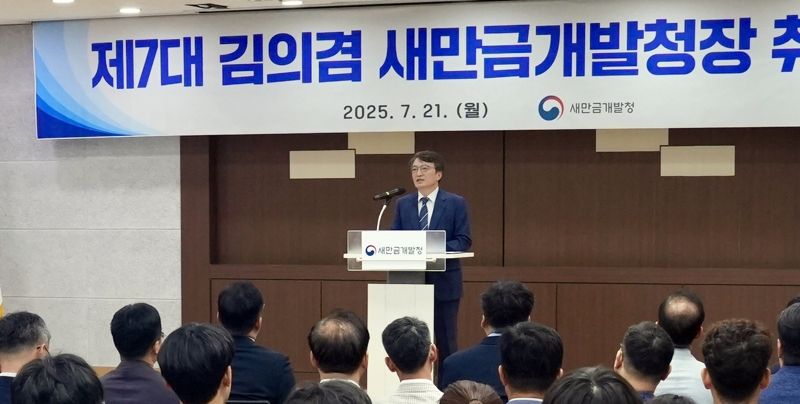 【파이낸셜뉴스 군산=강인 기자】 김의겸 신임 새만금개발청장이 21일 청사에서 취임식을 갖고 본격적인 업무를 시작했다.