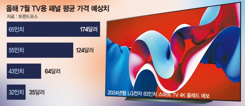 TV 제조사 입장에서 패널가 하락은 원가 부담 완화라는 점에서 단기적으로는 긍정적이다. 하지만 실질적으로 시장 자체가 침체돼 TV 수요가 줄어 들고 있어, 수익성 개선에는 한계가 있다는 지적이 나온다. 실제 시장조사업체 옴디아에 따르면 올해 TV 출하량은 2억870만대로 전년 대비 0.1% 감소할 것으로 전망된다.