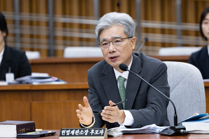'정치적 영향력이 미칠 수밖에 없는 구성 원리를 갖고 있는 헌재에 재판소원을 맡긴다는 것에 대한 입장은 어떤가'라는 장동혁 국민의힘 의원의 질문에 김 후보자는 "재판소원 도입에 대해서는 장단점이 분명 존재한다"며 "충분한 논의가 필요하다"고 했다.