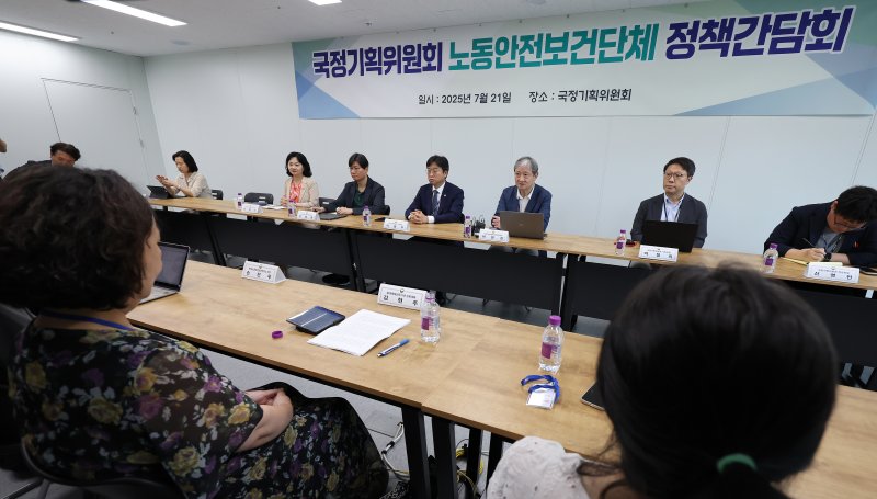 국정위는 사회1분과는 21일 서울 종로구 정부서울청사 창성동 별관에서 노동안전보건단체·전문가들과 정책간담회를 개최했다.