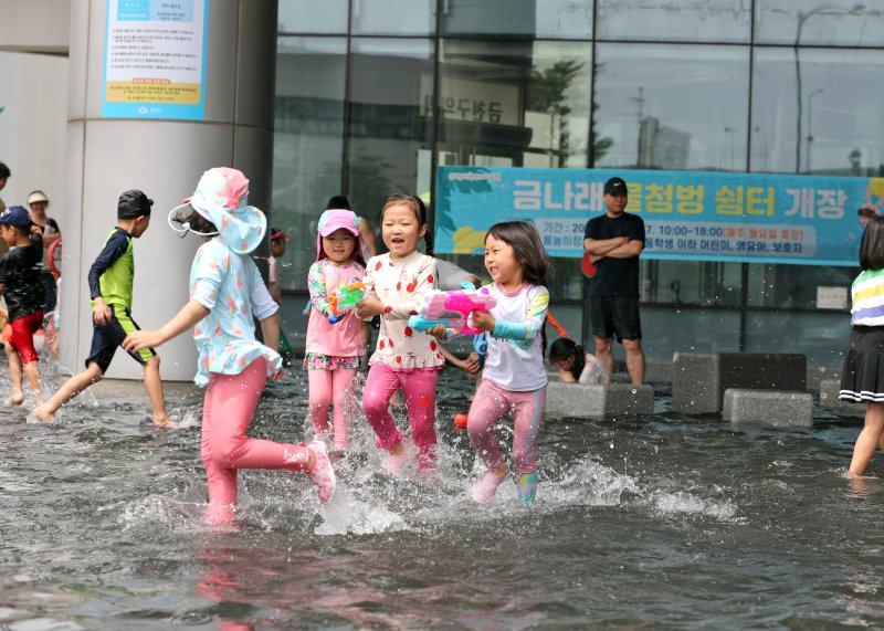 구청사 야외에 조성된 '금나래물첨벙쉼터'도 여름철 인기 공간으로 주목받고 있다.