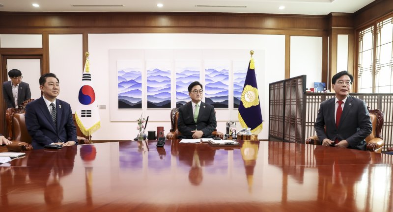 더불어민주당과 국민의힘은 이날 우원식 국회의장 주재로 여야 원내대표 회동을 갖고 23일 본회의에서 처리될 비쟁점법안과 인권위 신임 위원 선출 등을 논의했다.