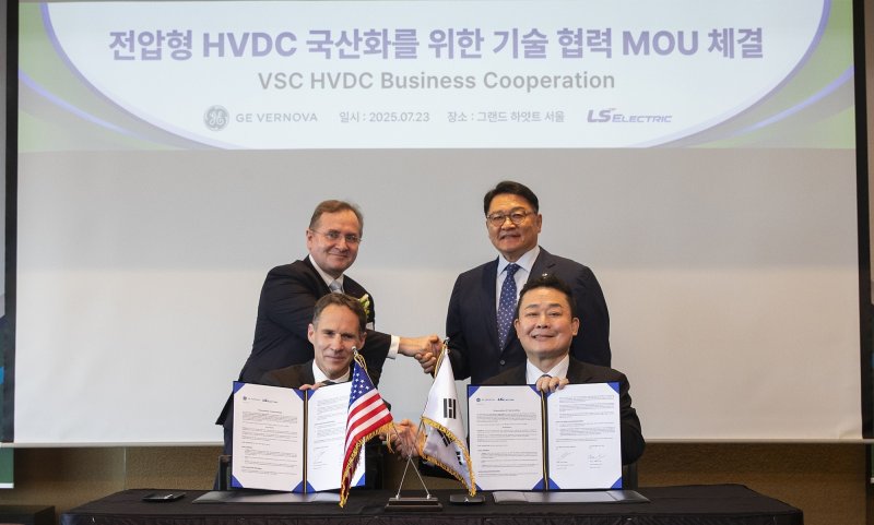 LS일렉트릭은 지난 23일 서울 용산구 그랜드 하얏트 서울에서 글로벌 에너지 설루션 기업인 GE버노바와 HVDC용 변환설비 국산화를 위한 업무협약(MOU)을 체결했다고 24일 밝혔다.