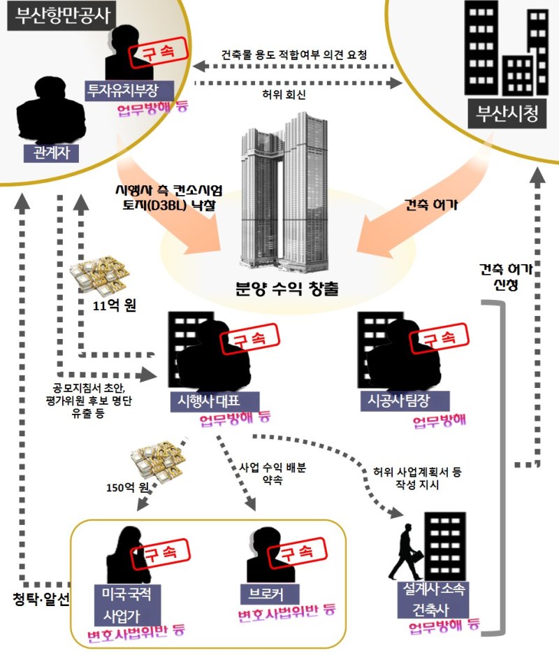 구속된 이들은 BPA 간부와 임직원, A 컨소시엄 소속 시행사 대표와 시공사 임원, 브로커 2명이다.