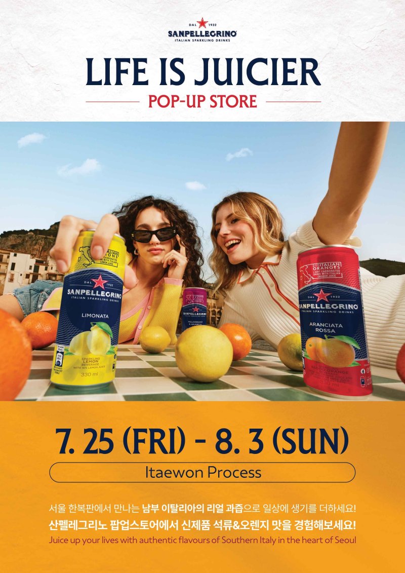 (서울=뉴스1) 배지윤 기자 = 이탈리아 프리미엄 워터 브랜드 산펠레그리노는 오는 25일부터 다음 달 3일까지 서울 이태원 프로세스에서 글로벌 캠페인 '라이프 이즈 쥬시어'(LIFE IS JUICIER)를 테마로 한 팝업스토어를 국내 최초로 선보인다고 24일 밝혔다.