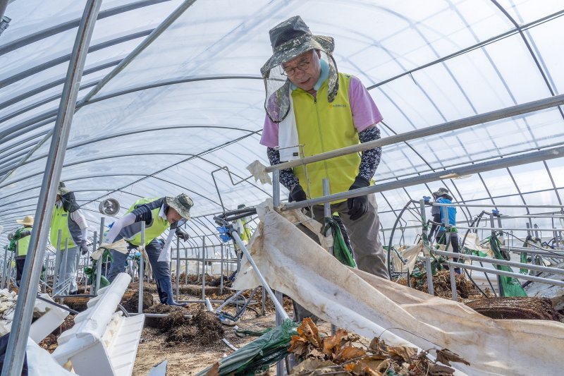 이날 봉사활동에는 이찬우 회장과 금융지주 봉사단을 비롯해 농협은행 백남성 농업·공공금융부문 부행장과 직원 등 60여명이 함께했다. 이찬우 회장과 봉사단은 폭염에도 불구하고 침수피해를 입은 딸기 하우스 농가의 폐기물 정리, 토사 제거 작업 등을 진행했다.