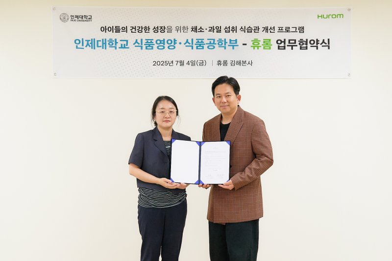 휴롬은 최근 인제대와 어린이의 건강한 성장을 위해 경남 김해 어린이집을 대상으로 채소·과일 섭취 식습관 개선 프로그램을 마련하는 업무 협약을 체결하기도 했다. 이번 협약을 통해 휴롬 본사가 위치한 김해 어린이집을 대상으로 어린이 식습관 개선을 위한 채소·과일 섭취 프로그램을 운영할 예정이다.