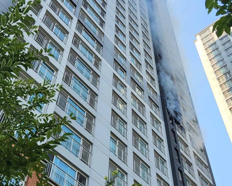 소방 관계자는 "아파트 10층 정도에서 연기가 보인다는 신고를 접수했다"며 "상층부로의 연소 확대가 우려돼 대응 단계를 발령했다"고 말했다.
